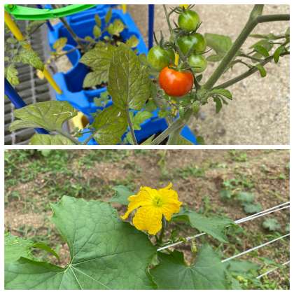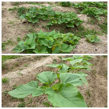 学習園ではヘチマの花が咲き、サツマイモやヒマワリが大きく育ち始めています。