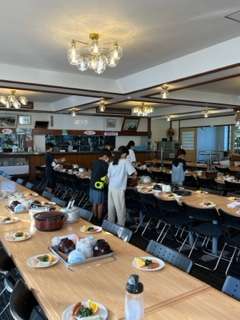 3日間、おいしい食事を用意してくれた食堂、店長さんともお別れです。食事係さんも一生懸命用意してくれました。感謝の気持ちを込めて「いただきます」