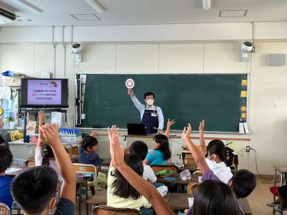 教室ではクイズやゲームをしたり、講堂では食品ロス問題について考えられる鬼ごっこをしたりして、楽しみながらも食について詳しく学ぶことができました。