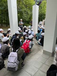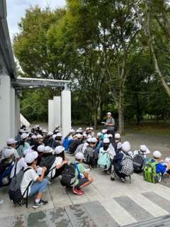 ピース大阪に到着しました。館内見学の方法を聞いて、今から見学をします。平和の意味について、しっかり学んで欲しいと思います。