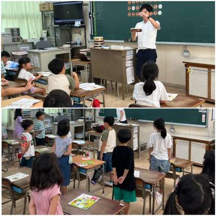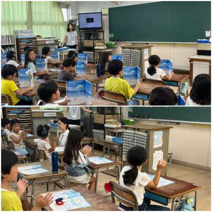 1年生は歌に合わせてリズム打ちの学習をしました。体を使って楽しそうに表現していました。