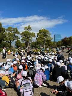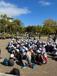 2年生の遠足で大阪城公園をオリエンテーリングします。スタート&ゴールの大阪城下に到着しました♪