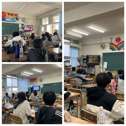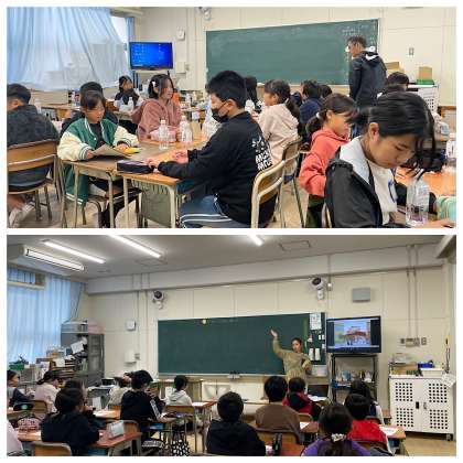学級の防災学習では、地震が起きた時の行動について考えました。