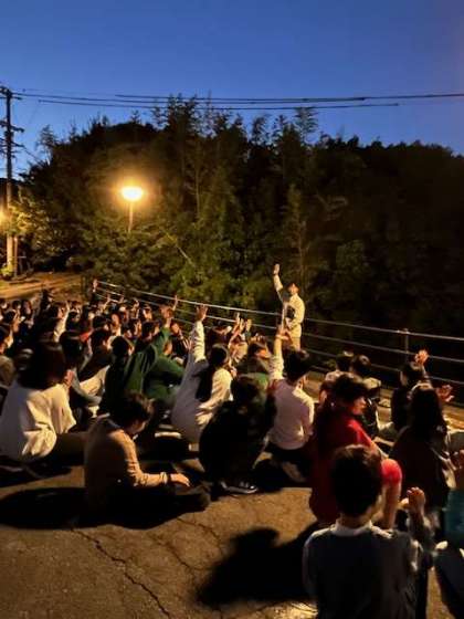 今晩の宿舎「みち潮」さんへ17時に到着。とってもきれいなお宿です! 開舎式をしたあと避難訓練をしました。
