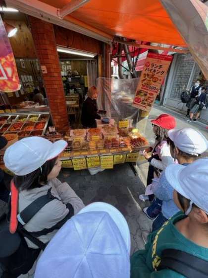 すぐ買える子もいれば、迷ってなかなか買えない子も…。買った食べ物は公園でお弁当と一緒にいただきます。