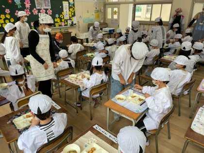 6年生のお兄さん・お姉さんが給食のお手伝いにきてくれています。