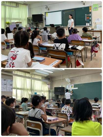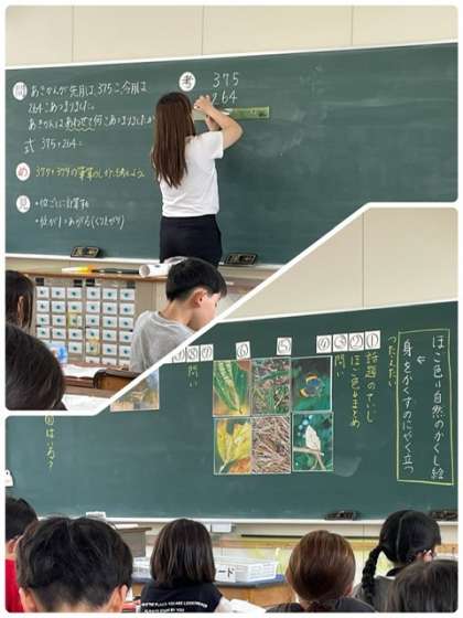どの教室も友だちと話しあったり、手を挙げて発表したりと
