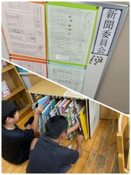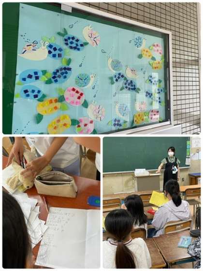 玄関掲示や、カメのエサやり、朝や給食の放送など
