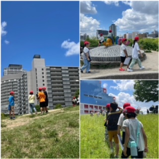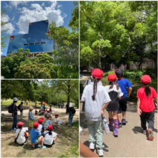 地下鉄のマナーもとっても良かったです。扇町公園へやってきました! まずは4人グループに分かれて公園内のチェックポイントをまわるオリエンテーリングです♪