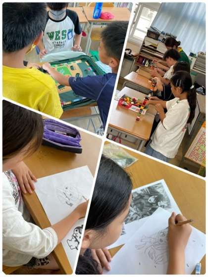 図書・漫画クラブでは、お手本を見て絵を描く力をのばしていました。回を重ねるごとに、どんどんうまくなっています。