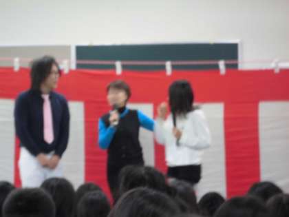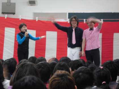 11/25(水)笑育学習を行いました。若手漫才コンビ「ブランケット」を迎えて、漫才を鑑賞しました。漫才が終わった後は、希望者の子どもとブランケットがコンビを組み、即興の漫才をしました。会場は大きな笑いに包まれ、笑いのたえない学習になりました。
