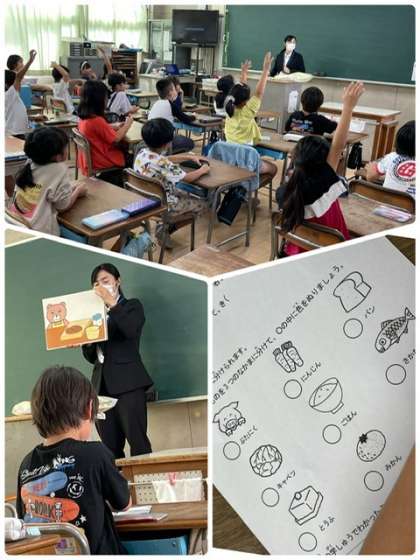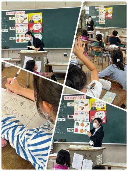 今日は、南港みなみ小学校から2年生に「栄養指導」を行うため栄養教諭の先生が来てくださいました。