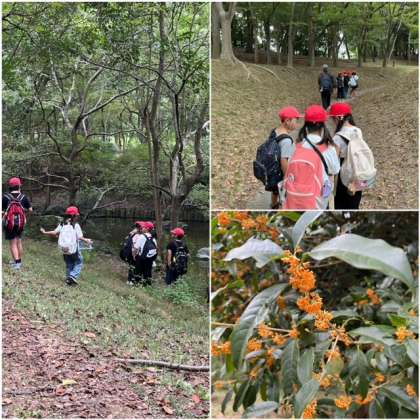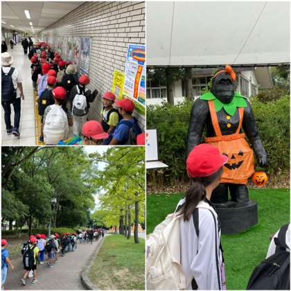 新金岡駅まで上手に歩けました。そして大泉緑地公園へ到着! ミッションをクリアーしながら、班ごとに森や湖を進みます♪