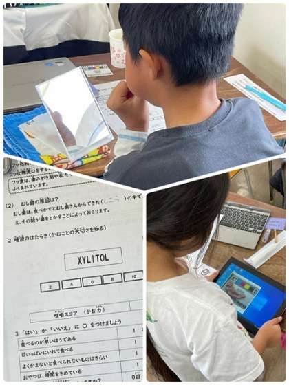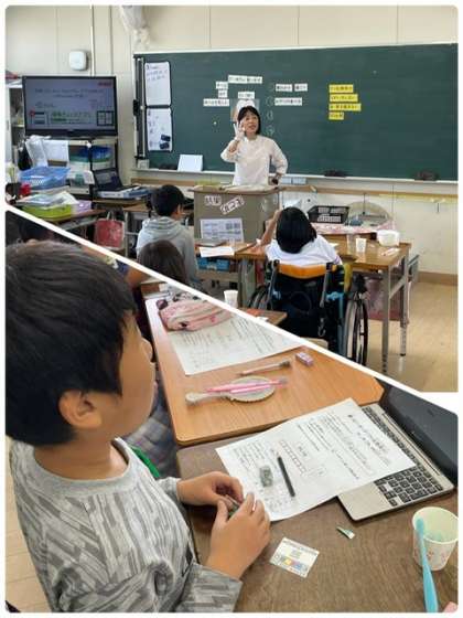 今日は、4年生「フッ化物洗口」の日でした。歯科衛生士さんと校医先生に来校していただきました。
