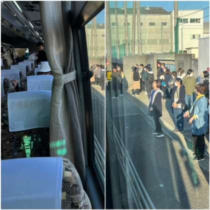 お見送りありがとうございます。全員そろって出発です! 元気にいってきます♪