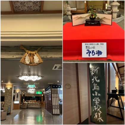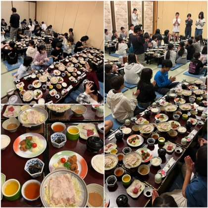 賢島の先端にあるお宿「みち潮」へやってきました。避難訓練をして、まずはご飯! そして、お土産組とお風呂組に分かれてそれぞれ活動しました。