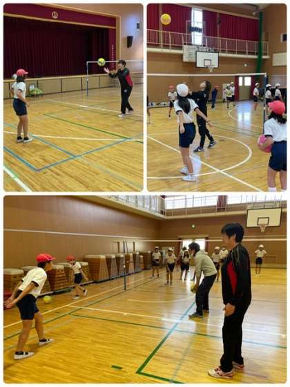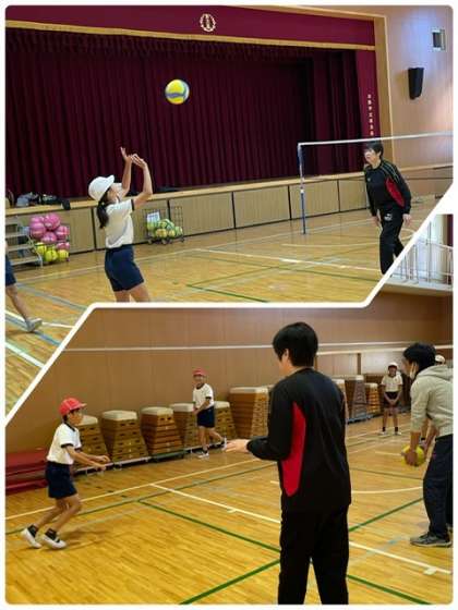 バレーボールだけではなく、話を聞くことや返事の大切さなど、時には厳しく指導していただきました。少しの時間でしたが、どんどん上手になっていく様子が見られました。