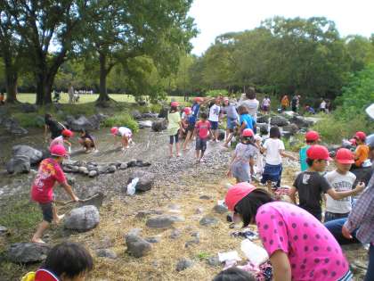 小川に入り、みんな冷たいせせらぎが心地良かったようです。