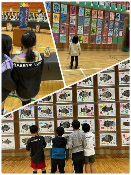 子どもたちも、ちがう学年の作品を鑑賞して「すごいなぁ」「シーサー作ってみたい」いろいろな感想を友だちと話しながら過ごしていました。
