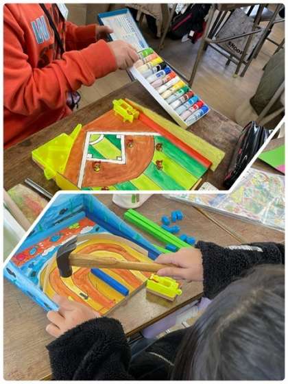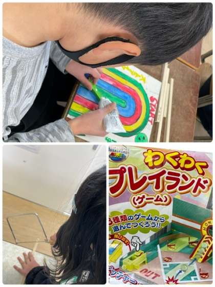 4年生が図工の時間に「わくわくプレイランド」に取り組んでいました。