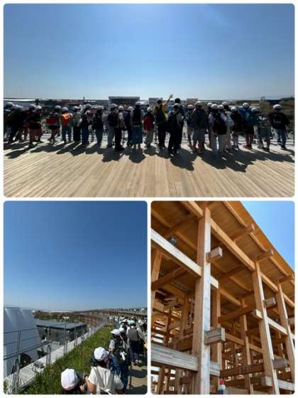 いざ、大屋根リングへ上からはまた違った風景を楽しむことができました。班行動でまわった場所など確認したりもしました。