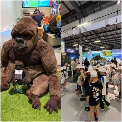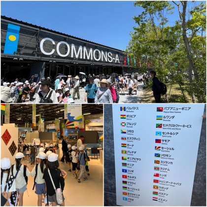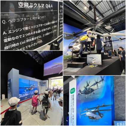 お弁当とおやつの後はパビリオンをまわりました。コモンズ館は色々な国がブースを出しています。そこを見学した後は「空飛ぶ車ステーション」に行きました。
