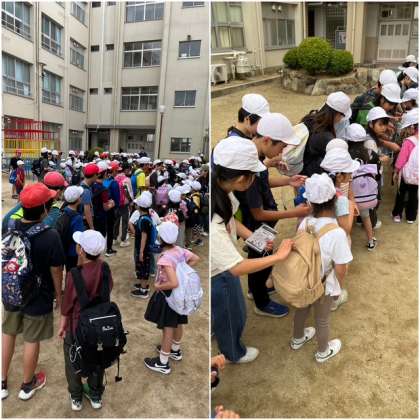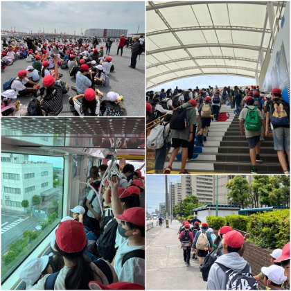 1年生と6年生がペアになって出発です! 頼りになる6年生。かわいい1年生♪ 道路でも、電車でも、お兄ちゃんとお姉ちゃんと一緒なら安心です。
