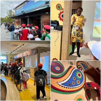 パビリオンの見学をしました。コモンズ館は色々な国の展示がありました。その後、空飛ぶ車を見ました。最後にモザンビークのパビリオンを見学しました♪
