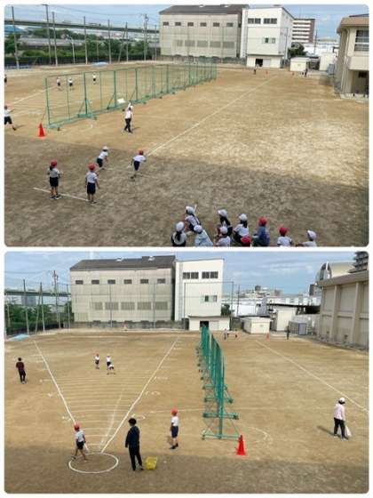 体力テストを行っています。今日は、運動場で50m走やソフトボール投げ、反復横跳びなどに取り組みました。