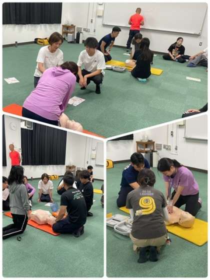 今日は、水泳学習にむけて「救命講習」を行いました。
