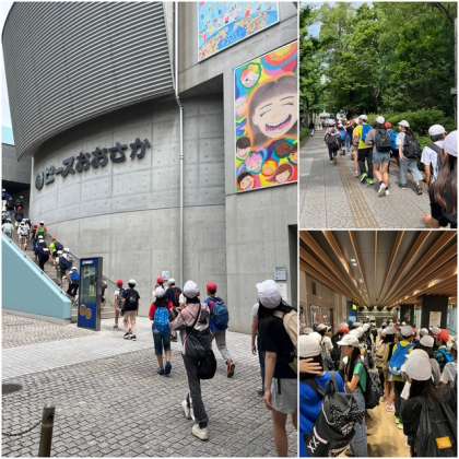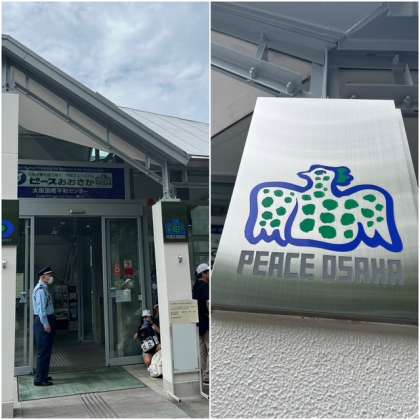 平和学習のため、森ノ宮にある「ピースおおさか」にやってきました。途中、地下鉄は混んでいましたが、マナー良く移動できました。