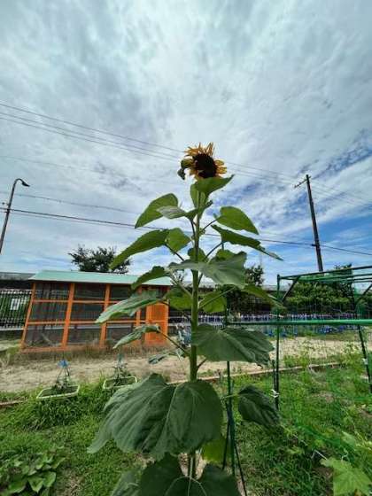あいにくの天気ですが、小学校の畑には2メートルを超える