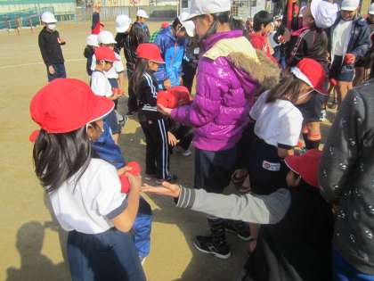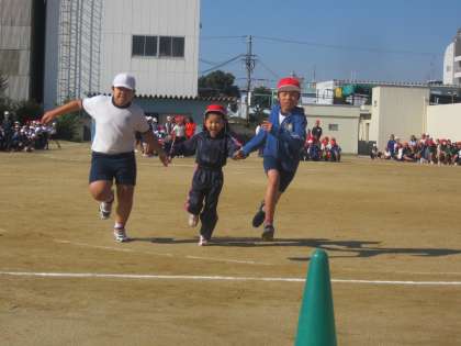 1年生と6年生は玉入れと「おててつないでランランラン(かけっこ)」をしました。