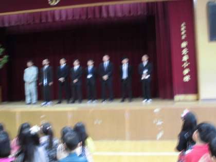 子どもたちは、新しく来られた校長先生や副校長・教職員の話をしっかり聞いていました。