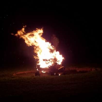 キャンプファイヤーは予定通り始まりました。各クラスの出し物や、レクリエーション係のゲームで大変盛り上がりました。