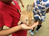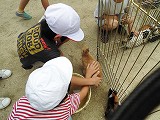 犬やカメなど身近な動物や、ひつじやうさぎ、やぎなどいろいろな動物に触れることができました。はじめは怖くて遠くから見ていた子もだんだん慣れて、なでてあげたり、だっこをしたりと動物となかよしになっていました。中には、ヘビを首にまいたり、チャボのとさかを触らせてもらった子もいて大興奮でした!