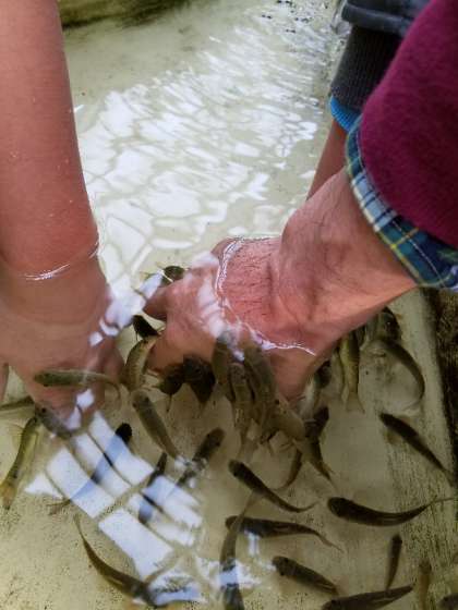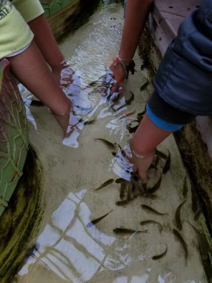 ドクターフィッシュの展示もありました。実際に水槽の手をつけて試せるので人気がありました。