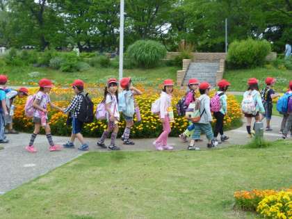 きれいな春の花を見たり、遊具でお友だちと遊んだりして、