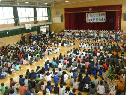校歌のおくりものの後、1年生が元気に「よろしくお願いします。」と元気に応えていました。