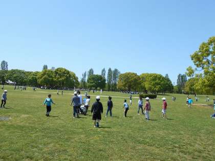 その後は、芝生の上で大なわをしたり、ドッジビーをしたりして楽しみました。