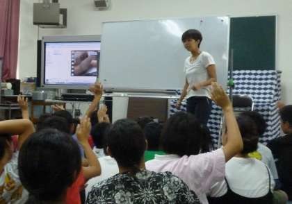 楽しい雰囲気の中、オリンピックで泳いでいる時の映像や世界新記録を更新した時の映像を解説しながら見せていただきました。