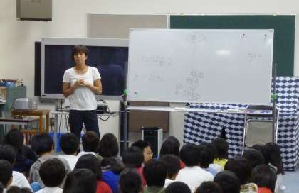 あいにくの天気で、プールでの活動ができなく残念でしたが、オリンピックメダリストを身近に感じることができる、楽しく有意義な時間でした。