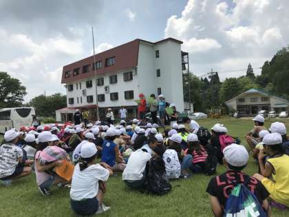 5年生がハチ高原に到着し、元気に開舎式を行いました。