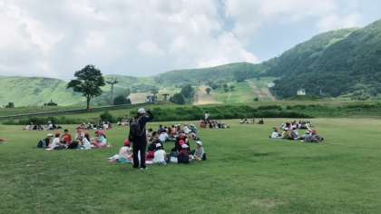 開舎式のあとは、景色のよい広場でお弁当を食べました。バス酔いした人もいましたが、みんな元気に過ごしております!