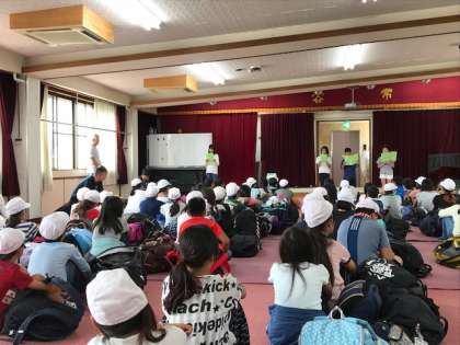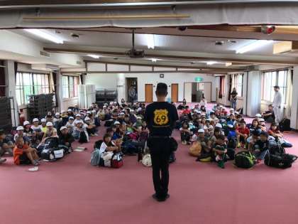 子どもたちは、真剣に校長先生の話を聞き、宿舎の方に心を込めてお礼をしていました。