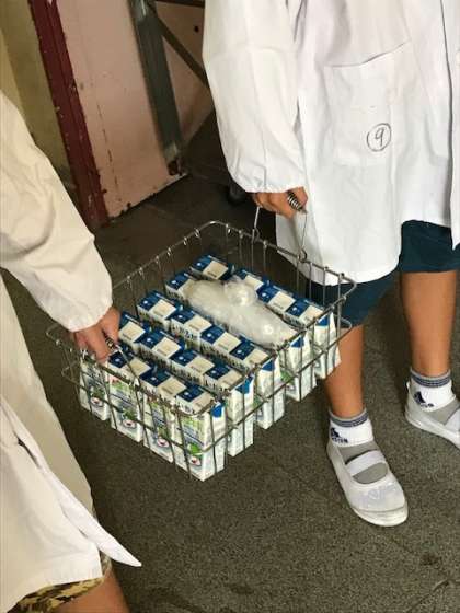 今までビンで配られていた牛乳が、2学期から紙パックで配られることになりました。当番の子どもたちからは、「めっちゃ軽い!」「運ぶのが楽になった。」などの言葉が聞かれました。