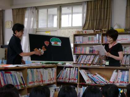 6月19日・27日、2年生のそれぞれの学級で、タンポポさん(図書ボランティアの方々)による読みきかせをしてもらいました。
