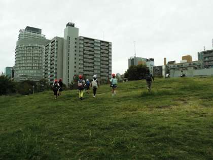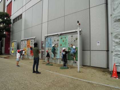 扇町公園では、最初にオリエンテーリングを行い、公園内にあるいろいろなものに目を向けて、楽しくグループ活動していました。お昼ご飯を食べると、みんなはすぐに遊具や森田先生と一緒にボルダリングしていました。初めてするボルダリングに子どもたちは、
