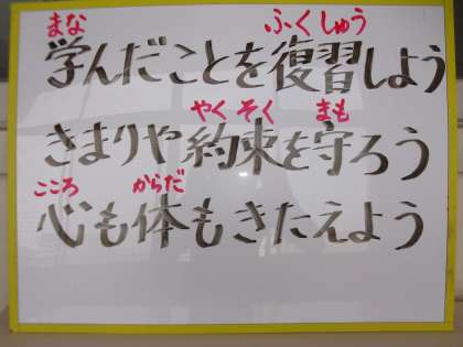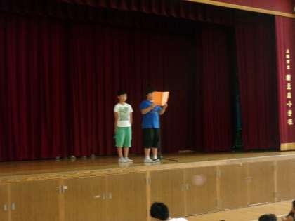 校長先生からは、夏休みの目標として「学んだことを復習しよう」「きまりや約束を守ろう」「心も体もきたえよう」の3つの話がありました。