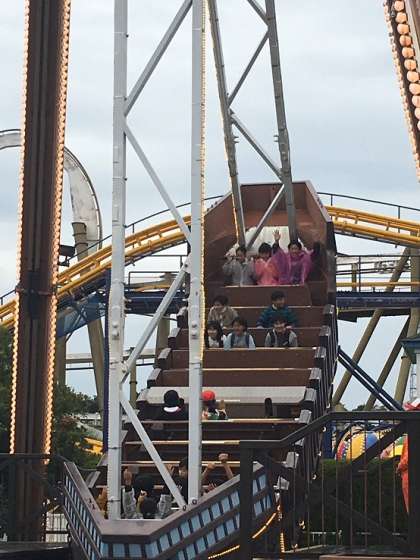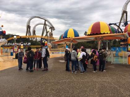 途中で雨に降られましたが、後半奇跡的に雨も止みアトラクションを楽しむことができました。到着の遅れもありましたが、最後までスペイン村を満喫しようと頑張っているようです。